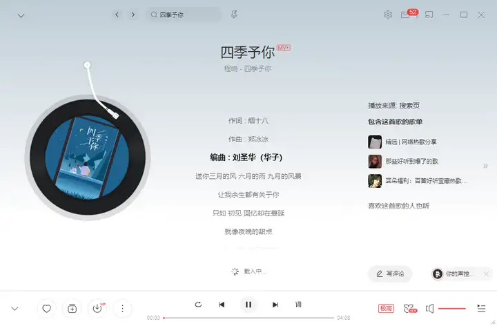 在网上很多人翻唱这首歌,《四季予你》是一首歌词很深情的情歌,唱这首歌的男生声音真的很温柔呀。