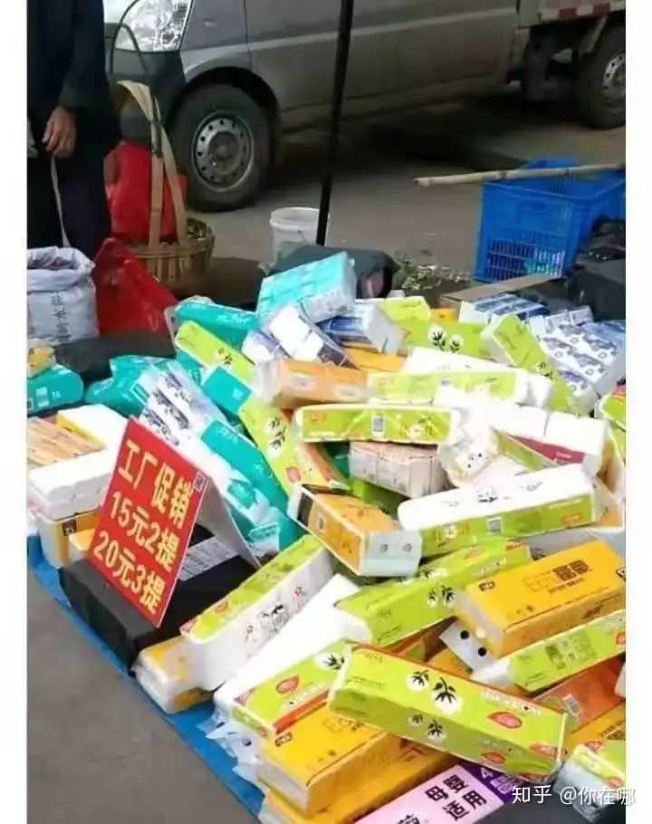 这些纸巾成本4米。我一次性进了八九百的,二三百提。在集市上卖,生意很好,薄利多销。一早上就只剩二三十提了。