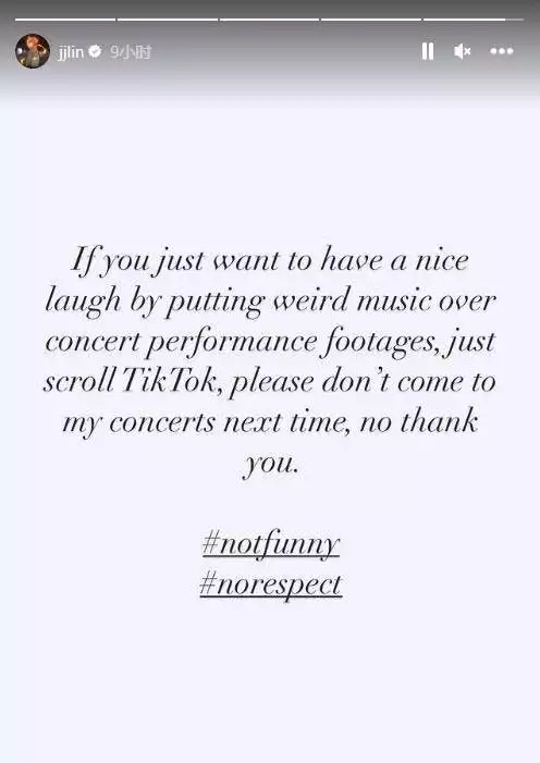 面对网友的恶搞,林俊杰在海外社交平台发布图文疑似回应了该事件,他写道:如果你只是想通过在表演片段上加上奇怪的音乐来获得快乐下次请不要来我的演唱会,并表示不好笑、不尊重。