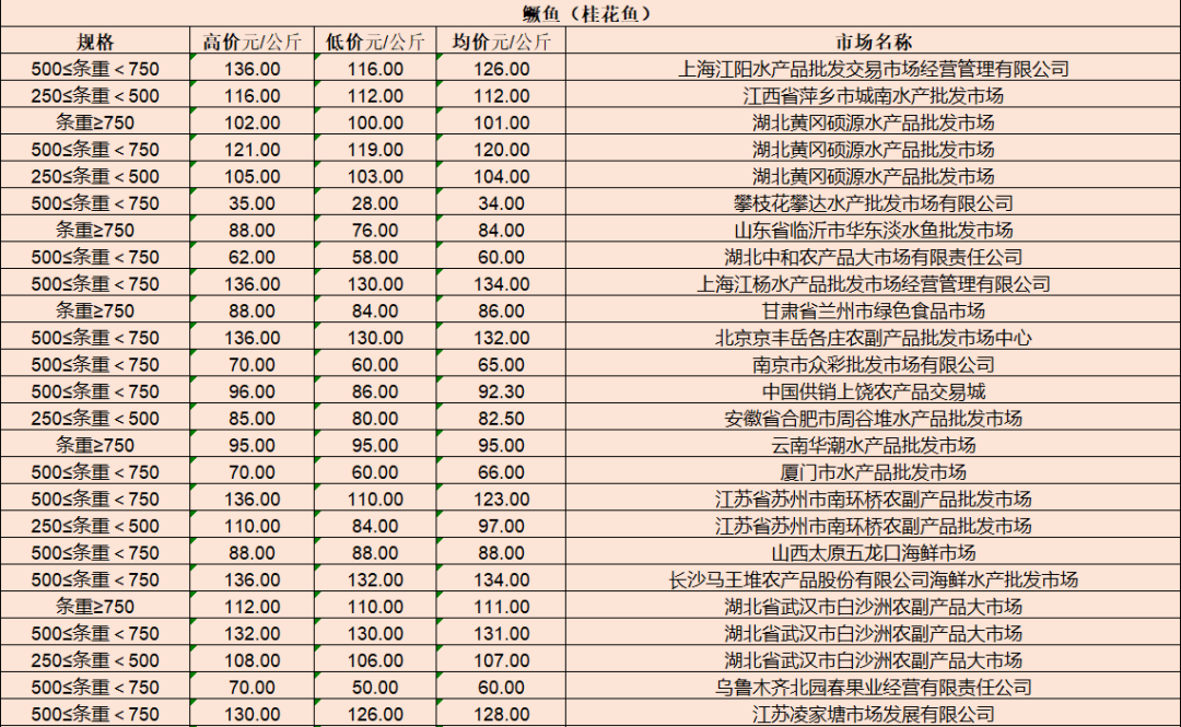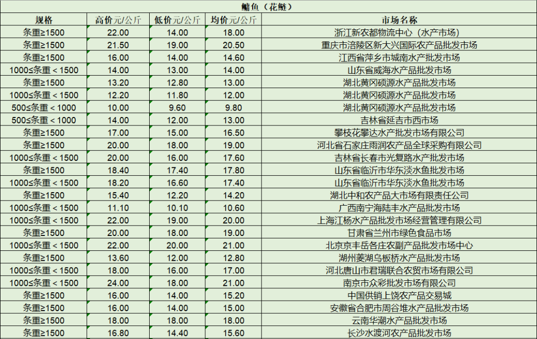 湖南华容:8两上、均重达1.1斤塘口价15.5元/斤,鱼价较上周出现0.5元/斤左右的涨幅;湖北武汉:8.5两上塘口价15-15.5元/斤,鱼价较上周出现0.5元/斤左右的涨幅。养户卖鱼积极性也有所提高,而且市场需求有所增加,缺大鱼,因此鱼价稳中有涨。