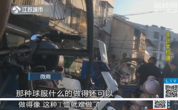 随后,记者以收夏季服装库存、大量订购秋冬服装为由,提出想要看库存,几经周折后,这名店主把记者带到了十多公里外的三塘村,在一间不大的服装厂里,几个工人正在埋头缝纫仿制名牌服装。