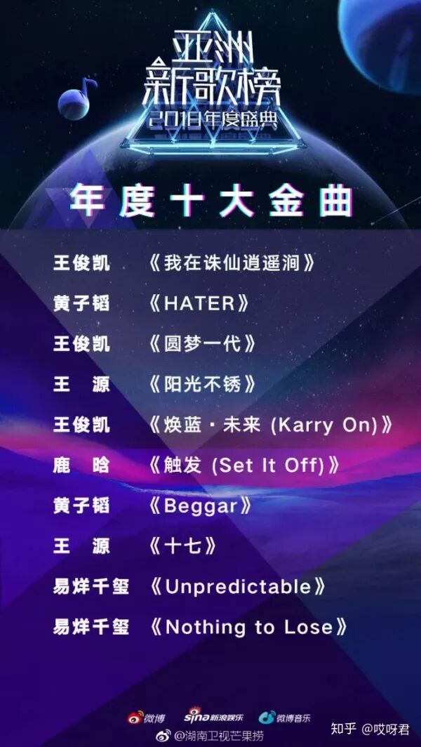 这是2018年度盛典亚洲新歌榜评选出的年度十大金曲,一年以后的2019年,这些金曲你听到过几首?又听说过几首?
